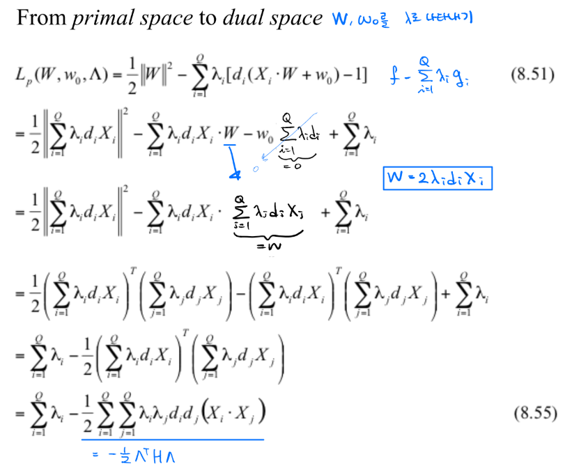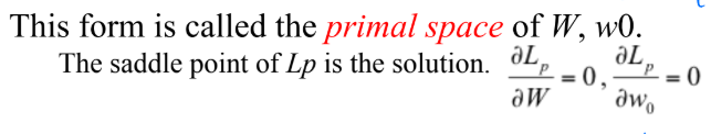 - minimizing $L_p w.r.t. W, w_0$ -> primal space
