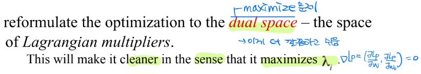 - 마지막 dual optimization 문제는 다음을 최대화하는 것!