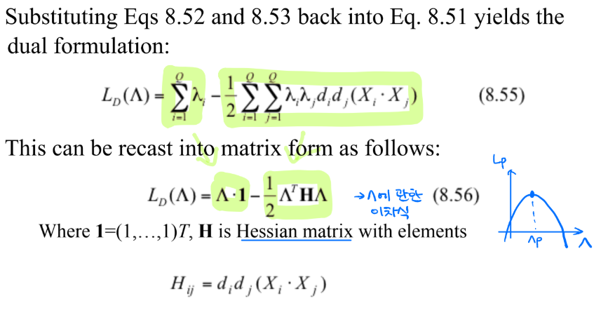 <- 이 중 support vector인 x에 대응되는 $\lambda$만 0이 아님(양수)