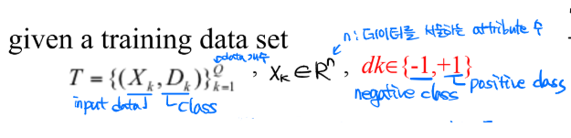 - hyperplane: 두 클래스를 나누는 것.