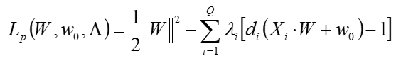 - 제약 조건($g(x)$): $d_i(X_i·W+W_0)-1 ≥0 i=1,...,Q